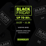 작년에 이어 올해도 브라운브레스 회원분들을 대상으로 블랙프라이데이 행사를 진행합니다. 이월시즌 최대 80%부터 시작되는 이번 블랙프라이데이 행사는 11월 23일 목요일부터 11월 26일까지 4일간 브라운브레스 온라인몰과 홍대점에서 진행됩니다. 회원분들의 많은 관심 부탁드립니다. - BLACK FRIDAY UP TO 80% 2017.11.23(THU) 00:00~2017.11.26(SUN)24:00 브라운브레스 온라인몰, 홍대점 * 행사 특성상 교환, 환불이 불가합니다. * 적립금, 쿠폰이 중복 사용되지 않습니다. - www.brownbreathshop.com -